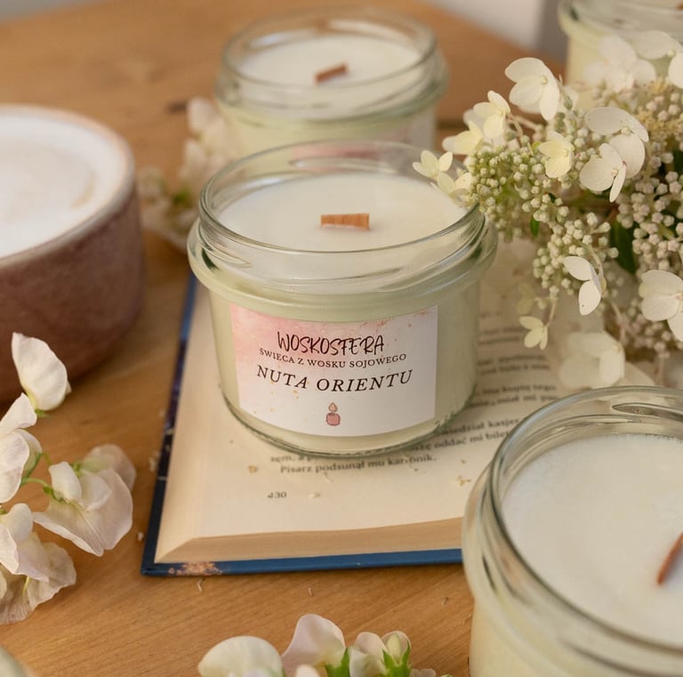 Przykład: świeca 200 ml z wosku sojowego pali się nawet 35–40 godzin, podczas gdy parafinowa tej samej wielkości – ok. 20–25 godzin.