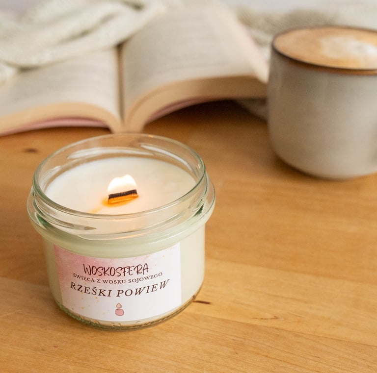 Wosk sojowy równomiernie i delikatnie uwalnia zapach, tworząc przyjemną atmosferę bez efektu duszenia.